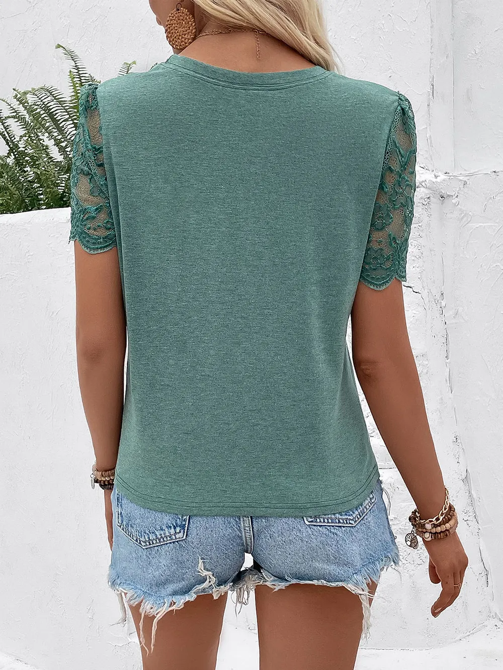 Perfee Lace Detail Short Sleeve Round Neck T-Shirt