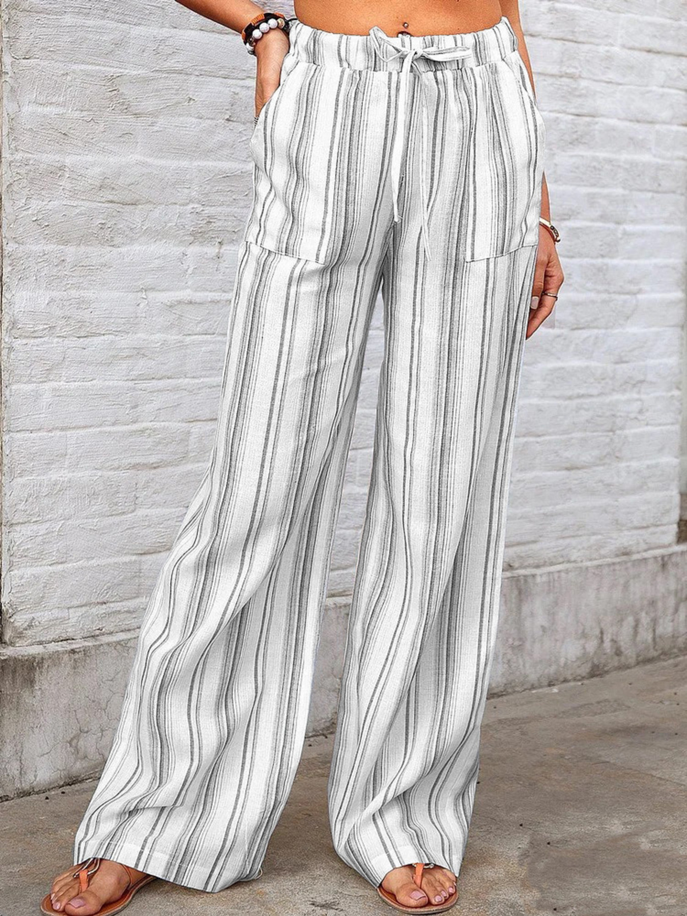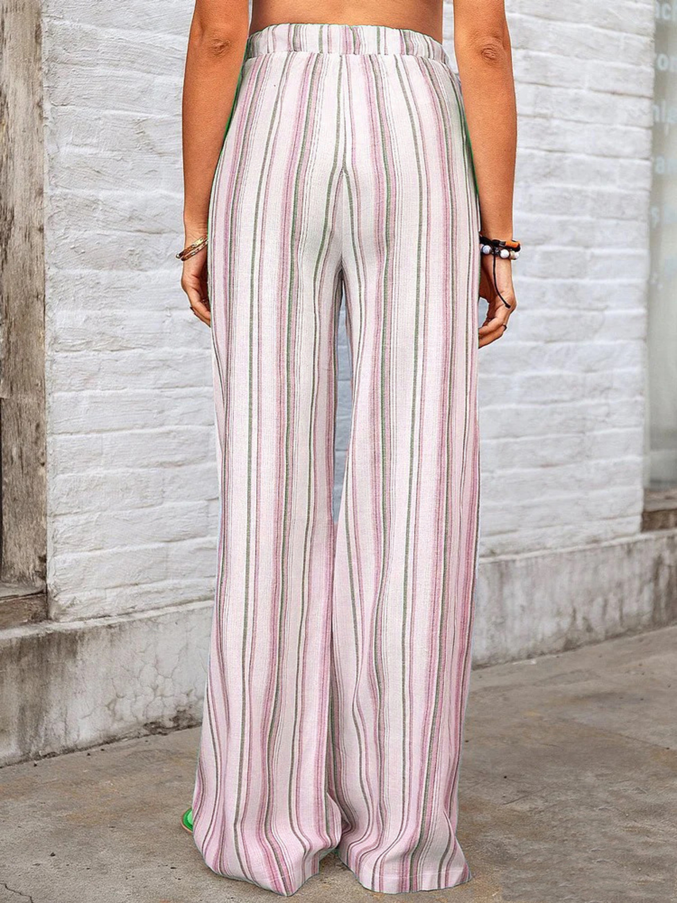 Full Size Striped Wide Leg Pants Plus Size