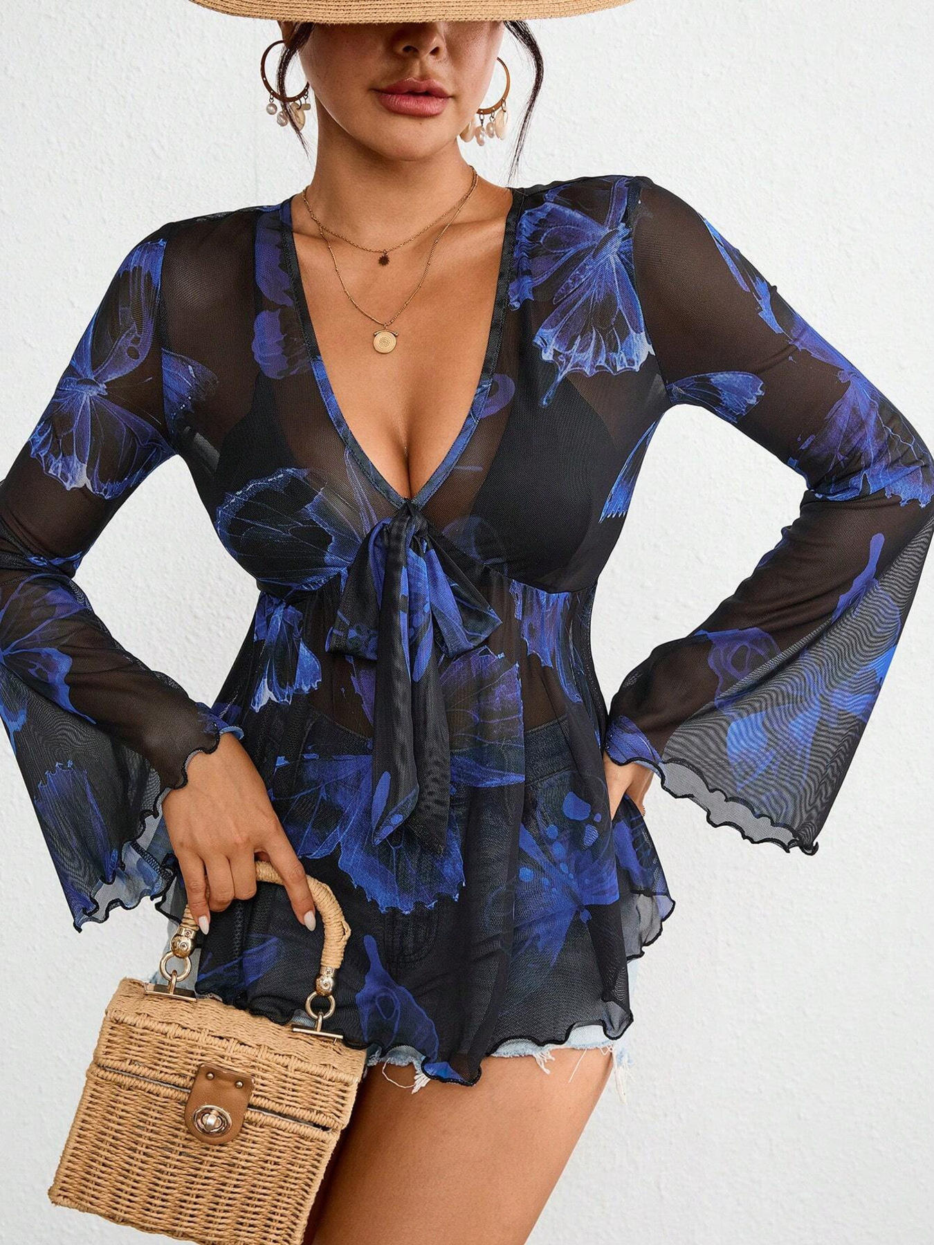 Tie-Front Flare Sleeve Blouse