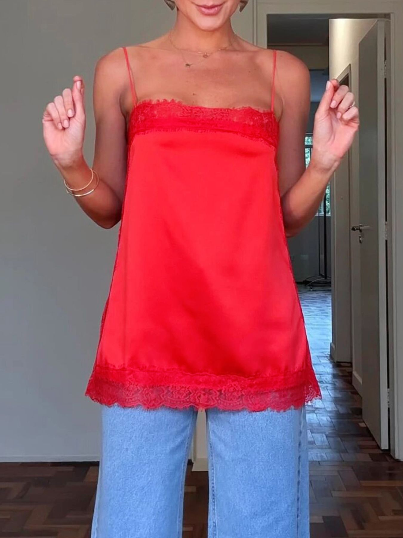 Lace Trimmed Satin Cami