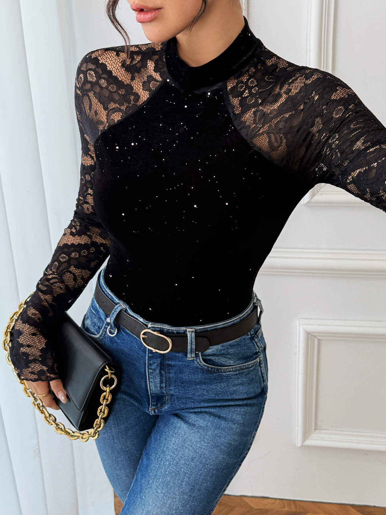 Lace Mock Neck Bodysuit