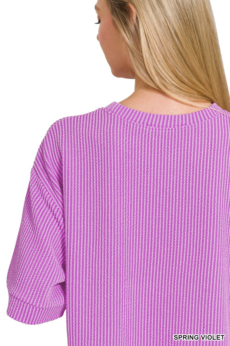 Zenana Raised Rib Short Sleeve Tee And Drawstring Shorts Set