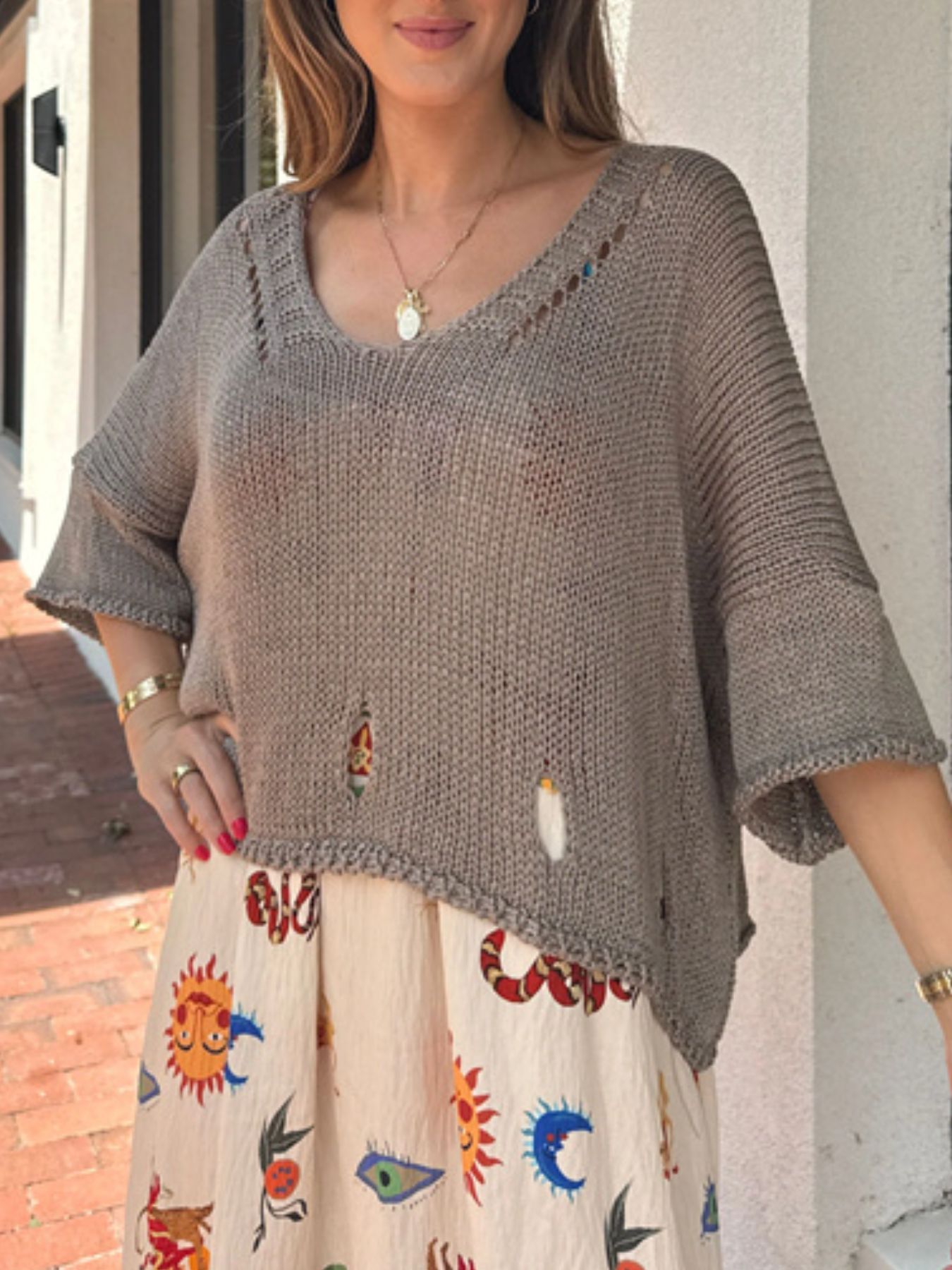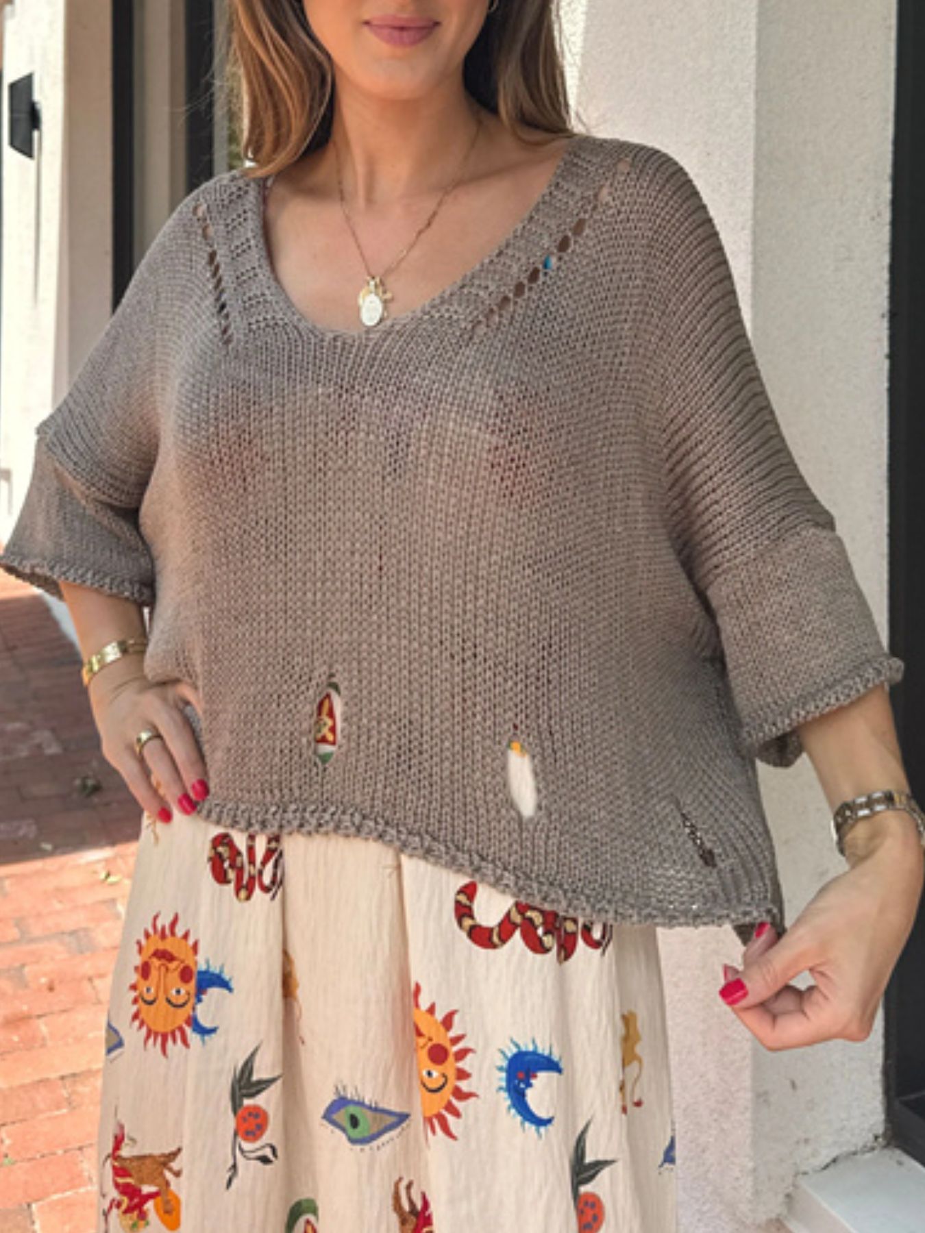 Cutout 3/4 Sleeve Sweater