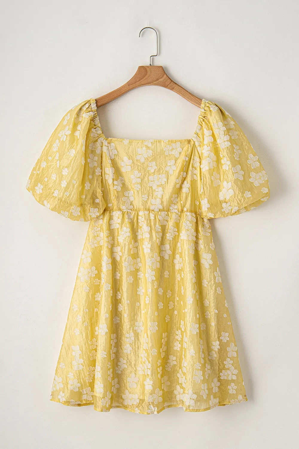 Printed Square Neck Puff Sleeve Mini Dress