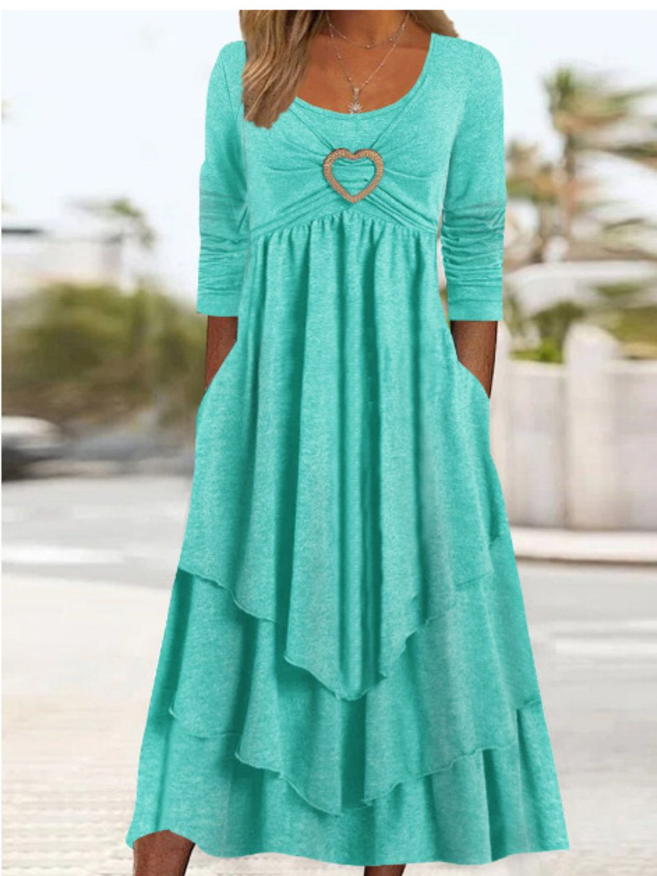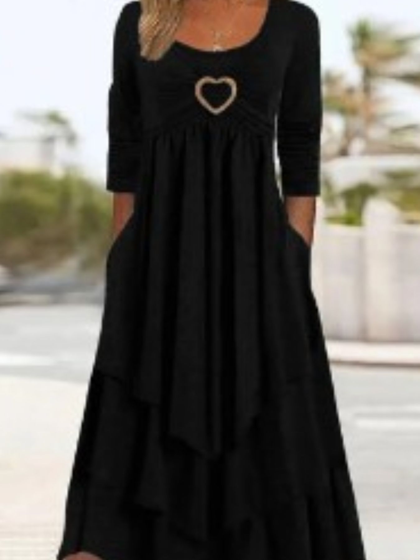 Full Size Heart-Decor Layered Midi Dress Plus Size