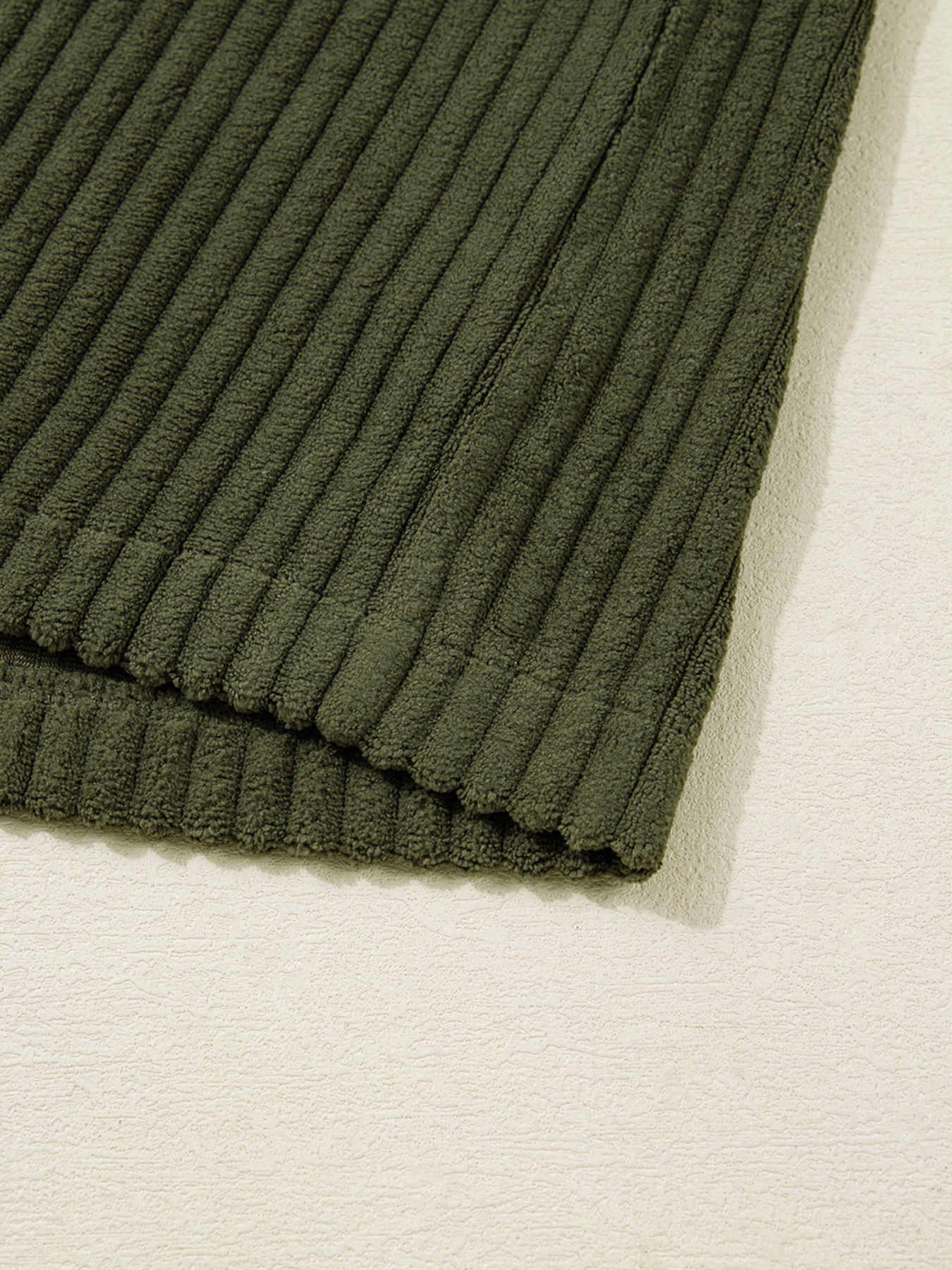 Ribbed Fleece Plaid Print Patchwork Button Up Jacket