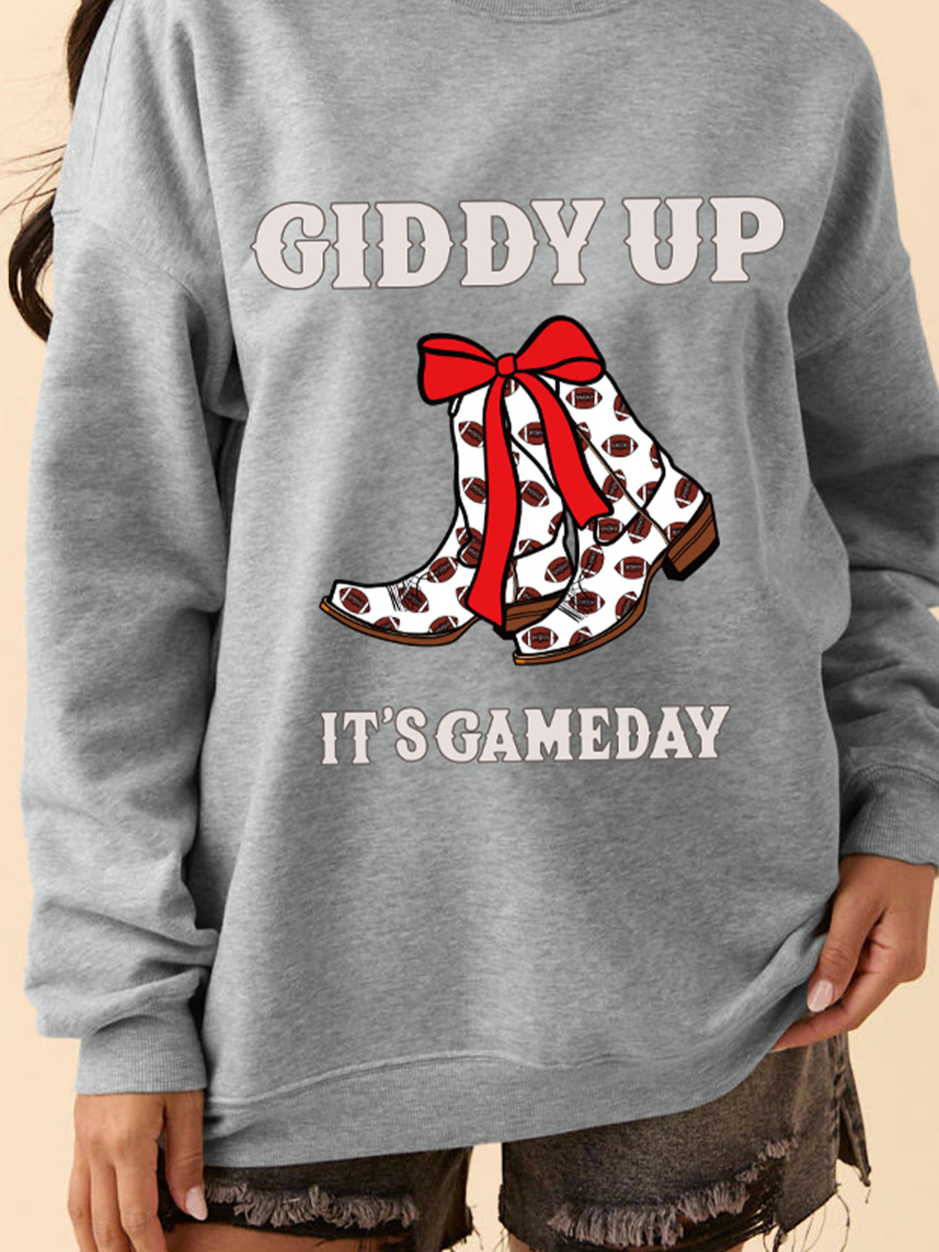 Giddy Up Its Game Day Cowgirl Boots Graphic Sweatshirt