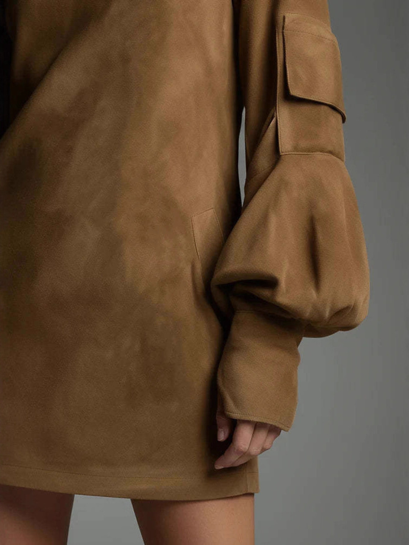 Turtleneck Lantern Sleeve Mini Dress With Pockets