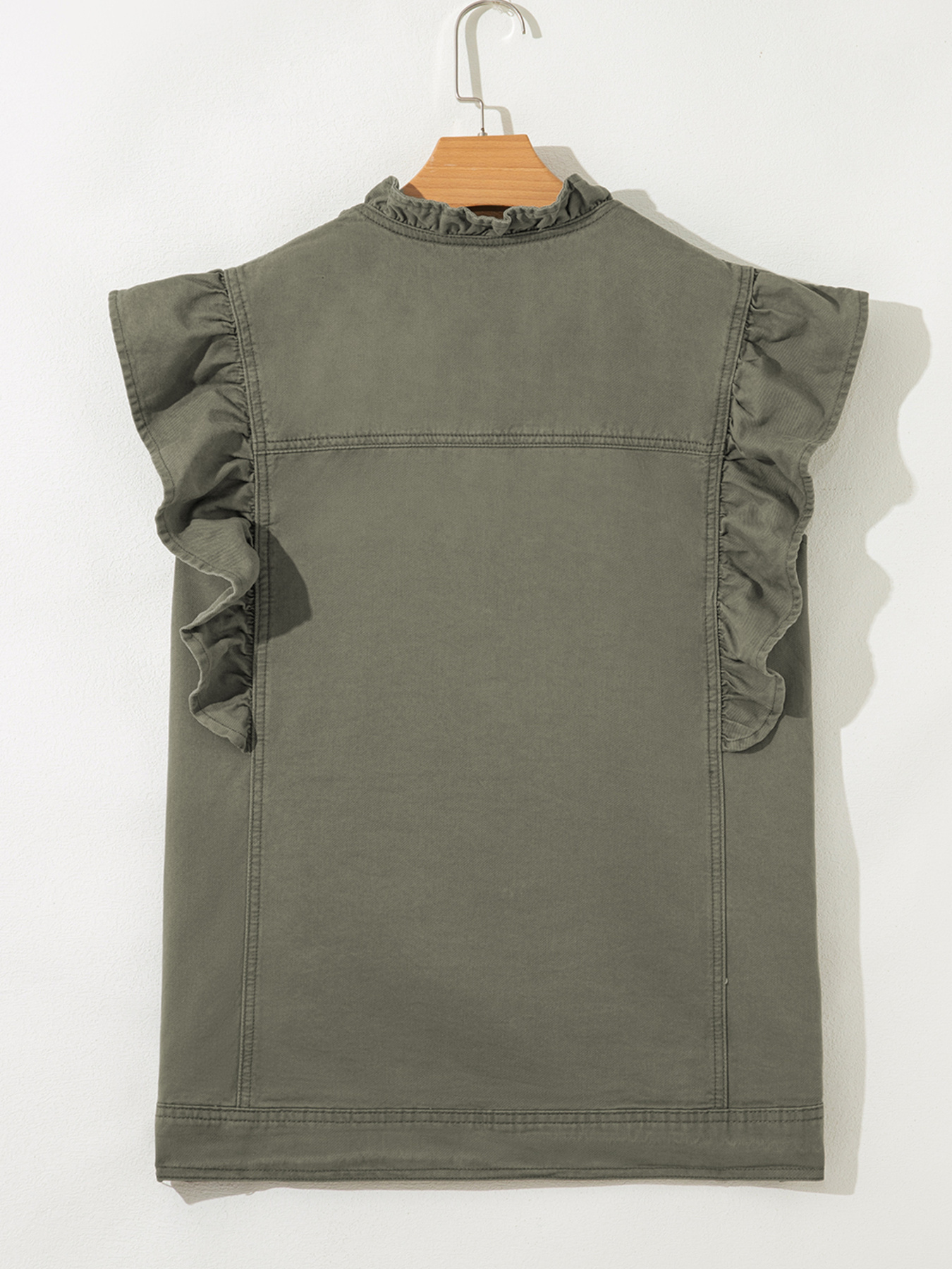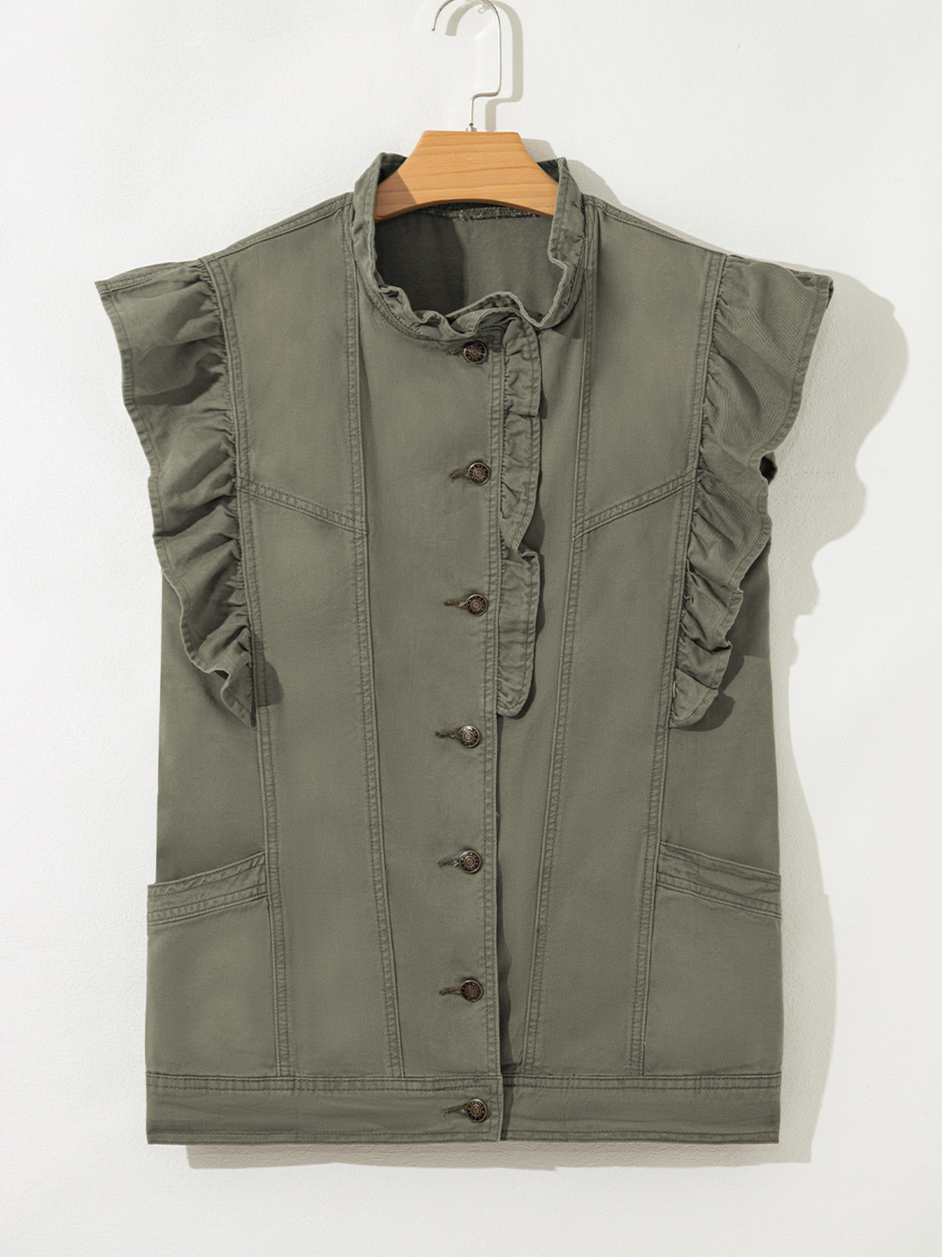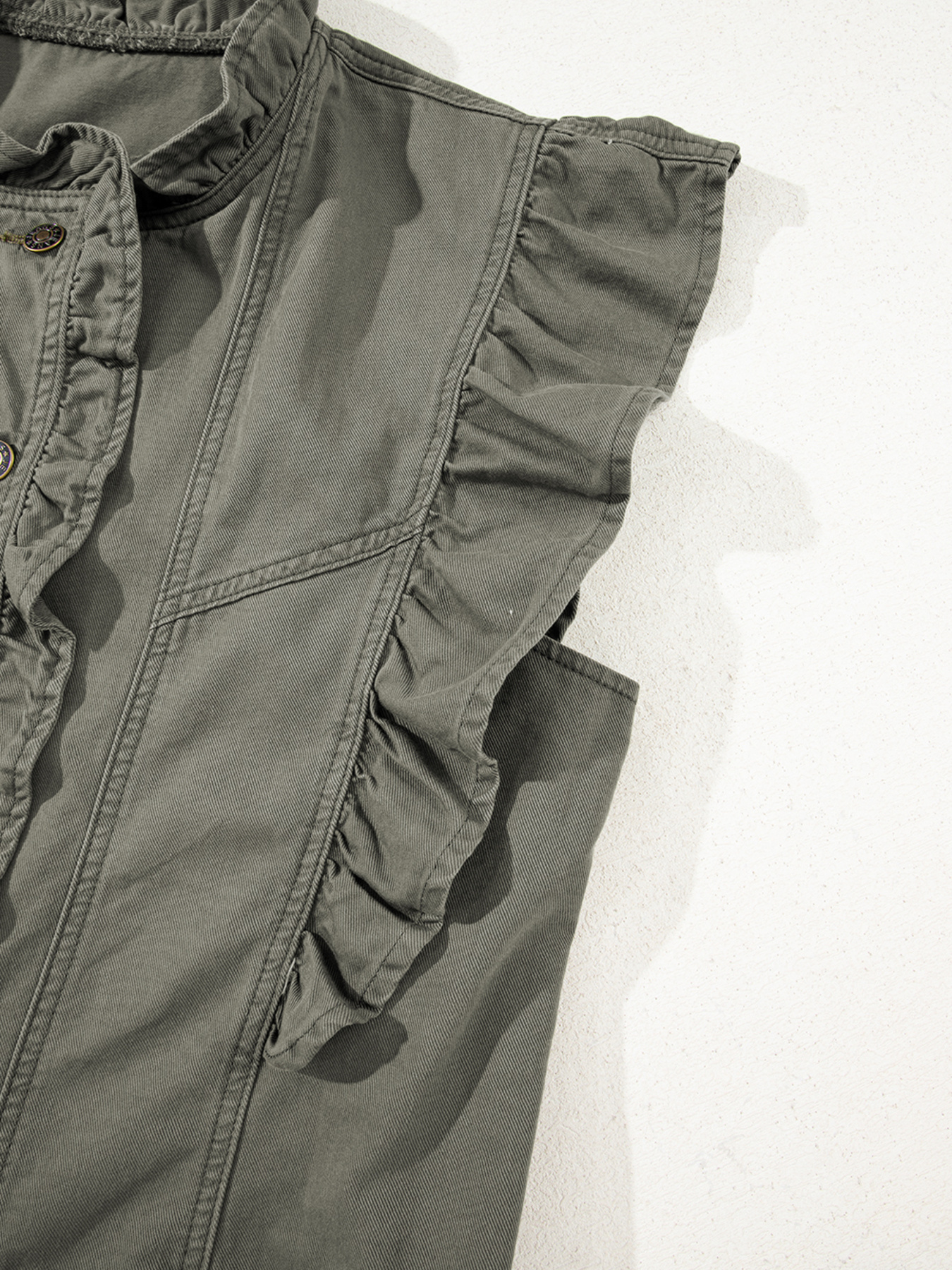 Ruffled Patchwork Denim Jacket Vest